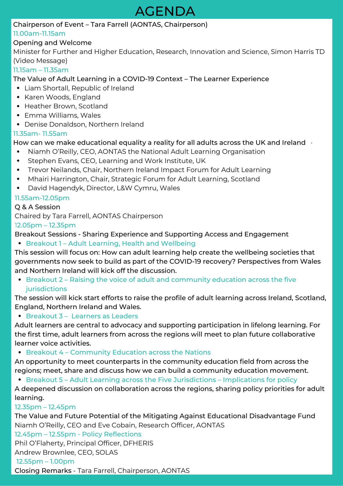 - Date: Friday, 5th March 2021 (Closing event of the AONTAS Adult Learner’s Festival 2021)