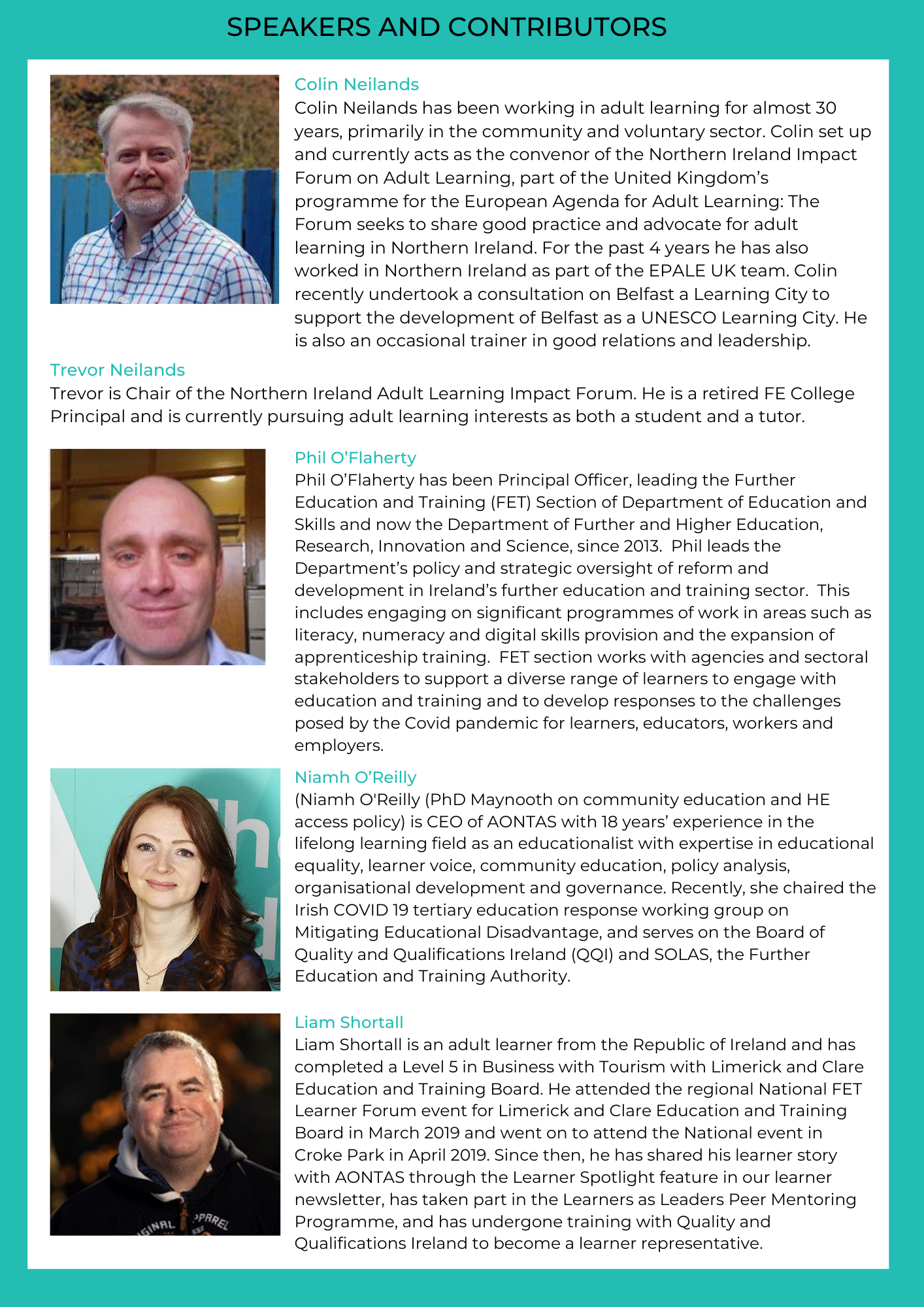 This policy day event will be the closing event of the 2021 AONTAS Adult Learners’ Festival and will bring adult learners, practitioners and tutors from across the Republic of Ireland, Northern Ireland, England, Scotland and Wales, through the Network for Adult Learning Across Borders (NALAB), to discuss adult learning across the region. In keeping with the theme of the Festival, Better Together, the purpose of the event is to bring together our neighbours in adult learning, to learn, discuss and work towards greater educational equality across the region. Participants at the event will have an opportunity to learn about what’s happening in adult learning and meet educators and learners through the discussion sessions.