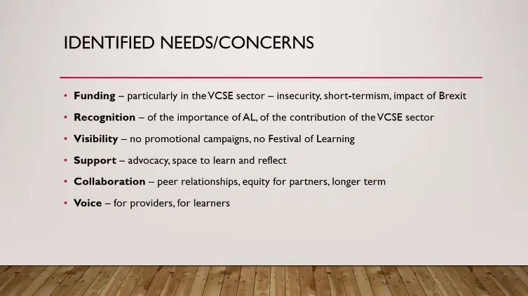 Colin Neilands, of Communitis and the Forum for Adult Learning in Northern Ireland, gave an overview of recent research findings on supporting educational equality in the adult learning sector in Northern Ireland. Colin presented research identifying the needs and concerns of Northern Ireland organisations including funding, recognition, visibility, support, collaboration, and voice.