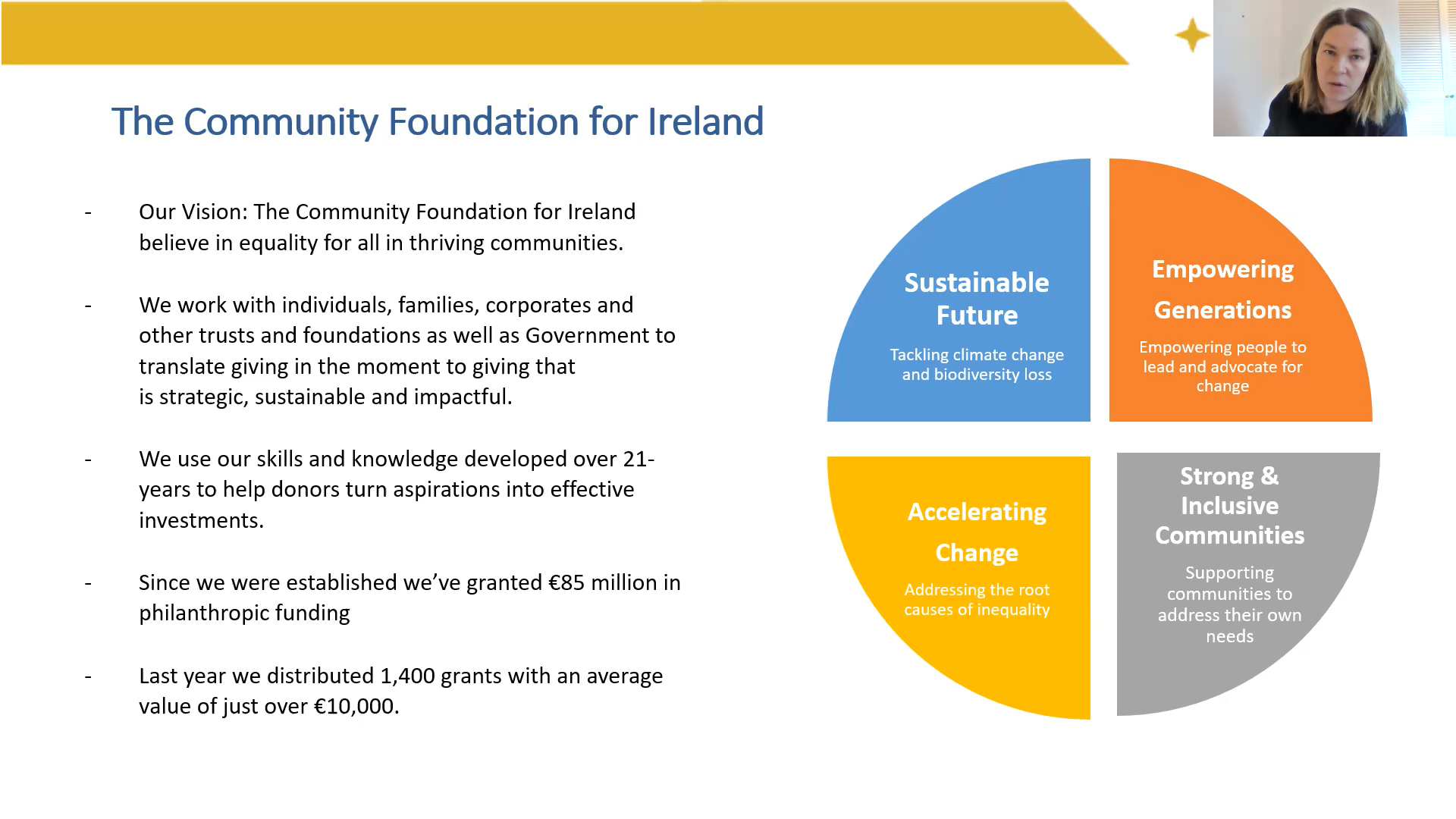 Frances Haworth, Head of Grants, Donor Care & Impact, the Community Foundation Ireland, joined the CEN to discuss the funding they have available and some key tips for members on best practice when completing funding applications. The Community Foundation for Ireland’s core belief is equality for all in communities and their work involves providing grants (acquired from charitable donations) to community organisations. Since there establishment they have invested over seventy-five million into communities.