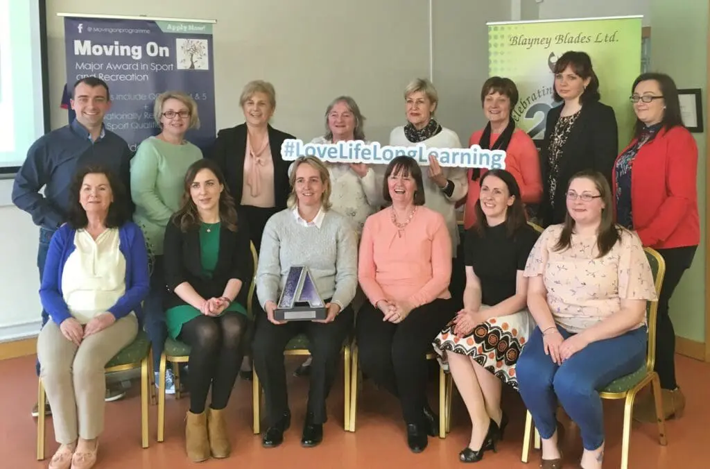 The Moving On Programme won an AONTAS STAR Award in the Wellbeing, Small & Medium Organisation category. The initiative provides training to those with no formal qualifications, in health-related fitness, food and nutrition, work experience, communications, human biology, IT skills, word processing, computer applications and personal effectiveness. AONTAS was delighted to attend this very special occasion which also marked 20 Years of the Moving On Programme. A number of other stakeholders were also in attendance including representatives from Cavan and Monaghan ETB and the Blayney Blades Board.