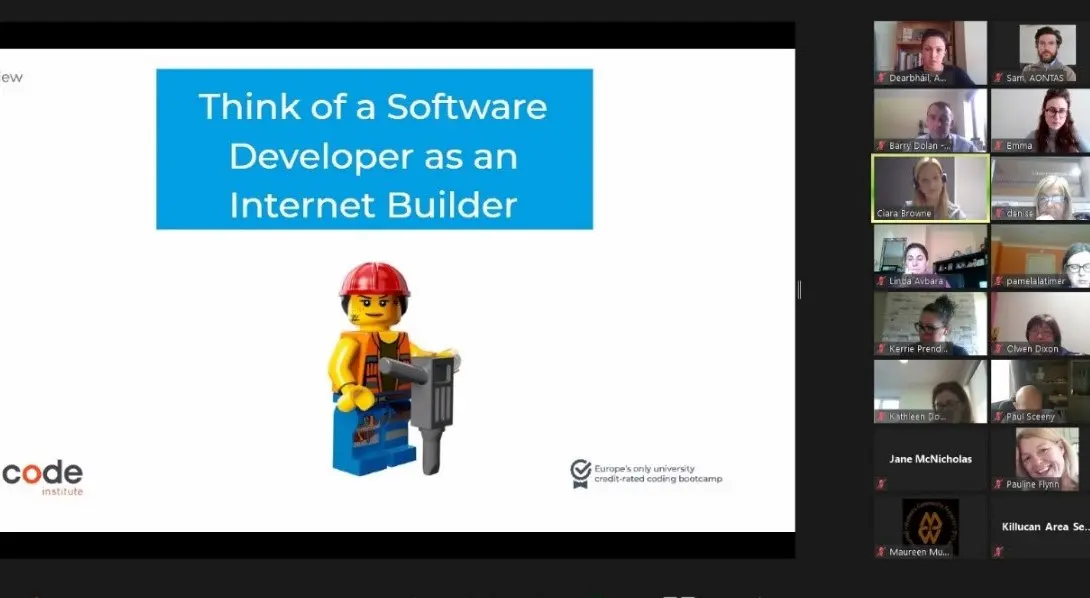 As things stand, the Code Institute has received funding from the European Social Fund meaning that the programme can be delivered part-time over one year through Springboard and in partnership with some Education and Training Boards. Ciara told webinar participants that she would very much welcome fellow AONTAS members getting in touch with her to look at securing more funding together so that the programme could be brought to more people across Ireland. In closing, she said that the programme is “a great route into software development and it is more accessible learning for more people”.