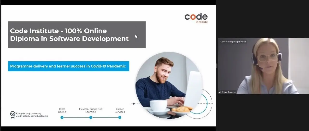Ciara Browne is the Student Recruitment Manager for the Code Institute. Ciara outlined how some of the biggest accounts she manages involve provision that is funded by an Education and Training Board, and Springboard.