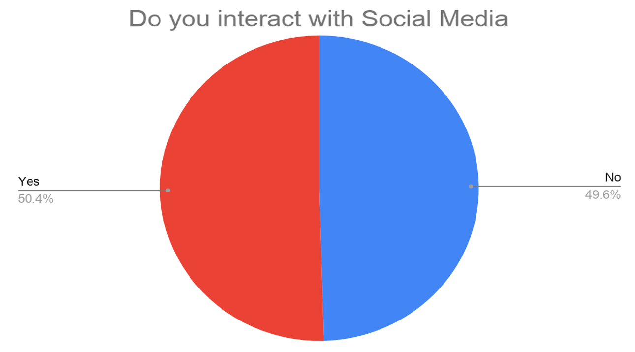 - There was an almost even split between those who interact with social media and those who do not