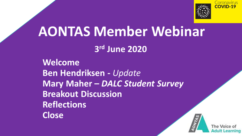 In order to effectively and comprehensively feed the issues learners and members are currently facing AONTAS relies on your support and input to continue its work with, for and on behalf of the sector (Registration for the upcoming webinars is available on our Events page.