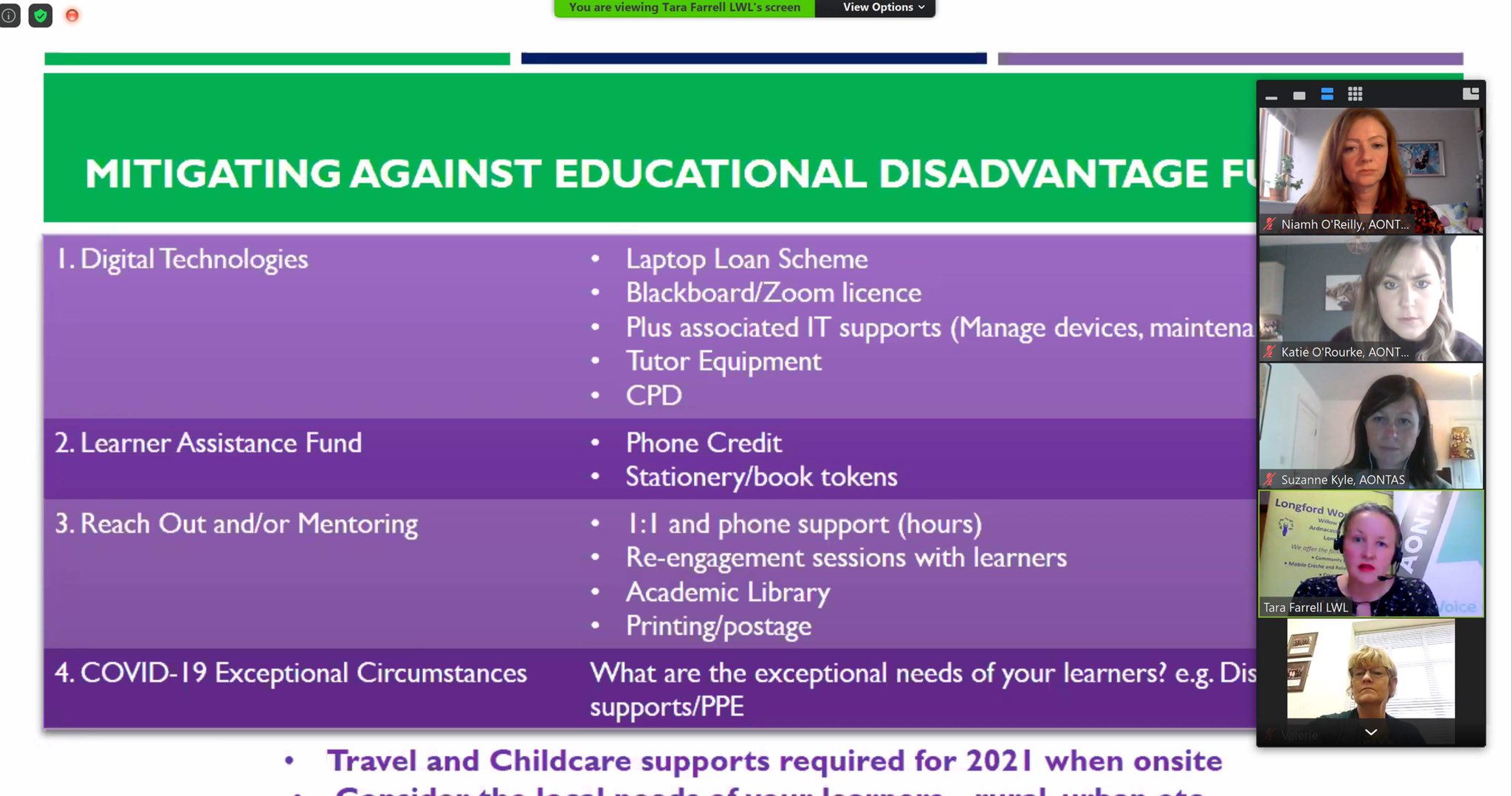 We also documented the positive impact of the MED funding and how future iterations could be improved through a summary analysis in December 2020 and published a report, “Making an Impact: A Reflective View of the Mitigating Against Educational Disadvantage Fund (MAEDF)”*, in March 2021 as part of the annual AONTAS Policy Day. Also, last May, I outlined the benefits and impact of the MED funding in an opinion piece in the Irish Times. Additionally, at the launch of the CEN Census report, we published a Policy Paper on 30th June, explicitly calling for a range of measures needed to support community education during COVID-19, including a specific recommendation for an improved MED funding.